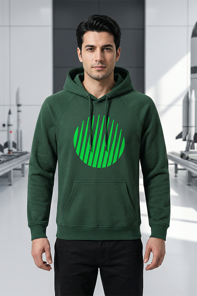 Kapüşonlu sweatshirt, ROKETSAN amblemli süzene doku detayıyla güçlü bir görünüme sahip.