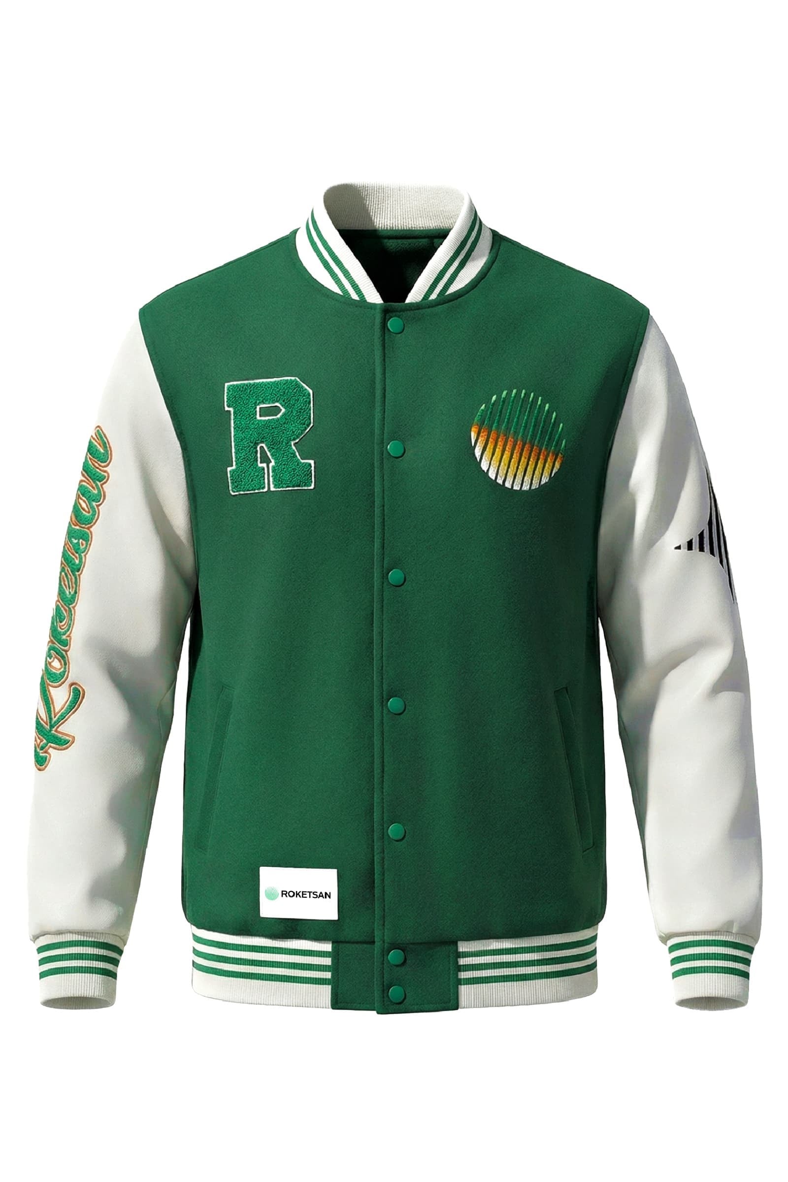 ROKETSAN kimliğini yansıtan çıtçıtlı kolej ceket; detayları ve kontrast renkleriyle güçlü bir duruşa sahip.